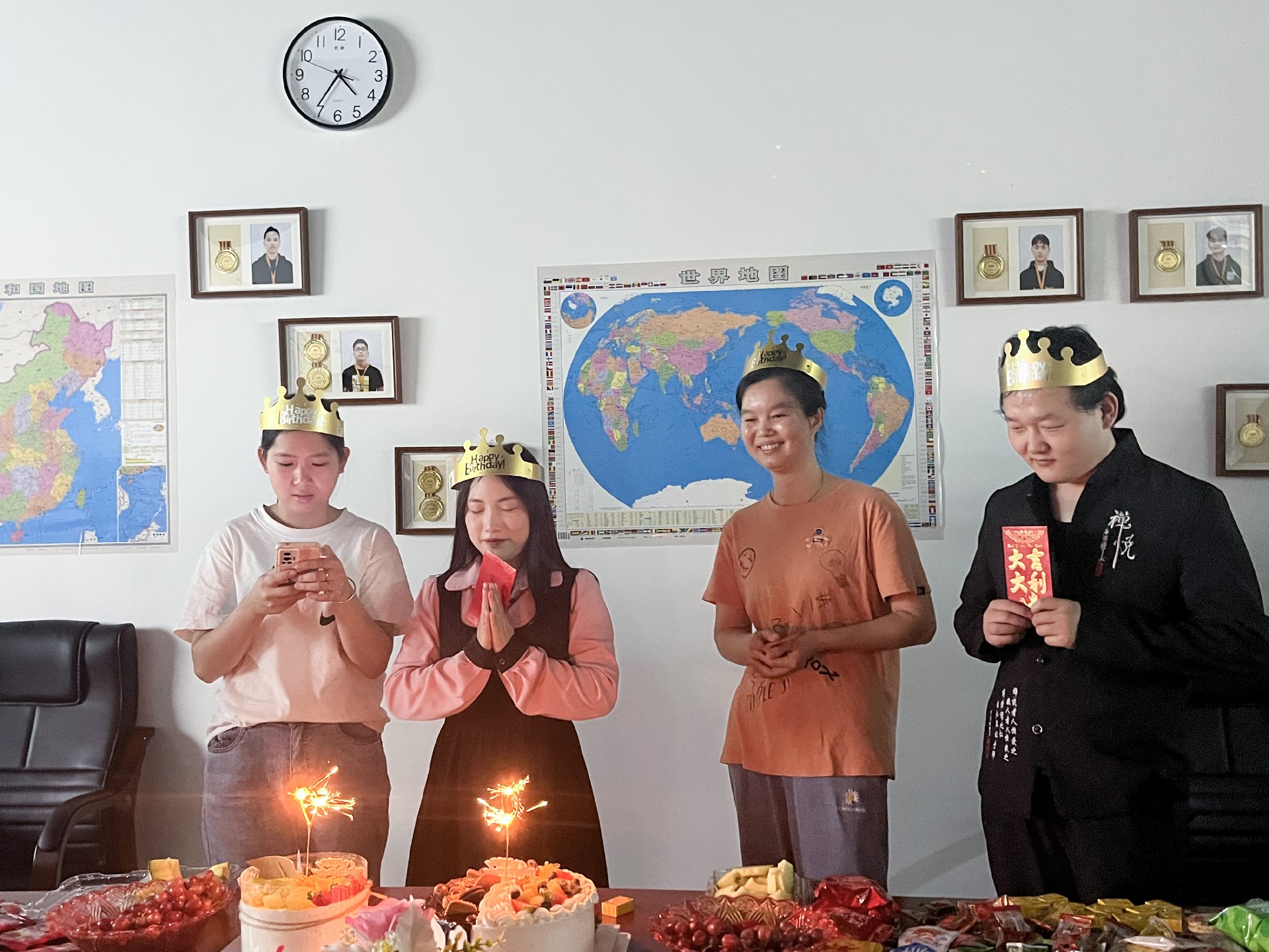 今天是一个特别的日子,我们品宁集团为12月份的四位工作人员庆祝生日。在这个特殊的时刻,我代表全体员工向他们表达最诚挚的祝福和美好的祝愿。