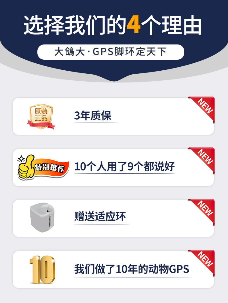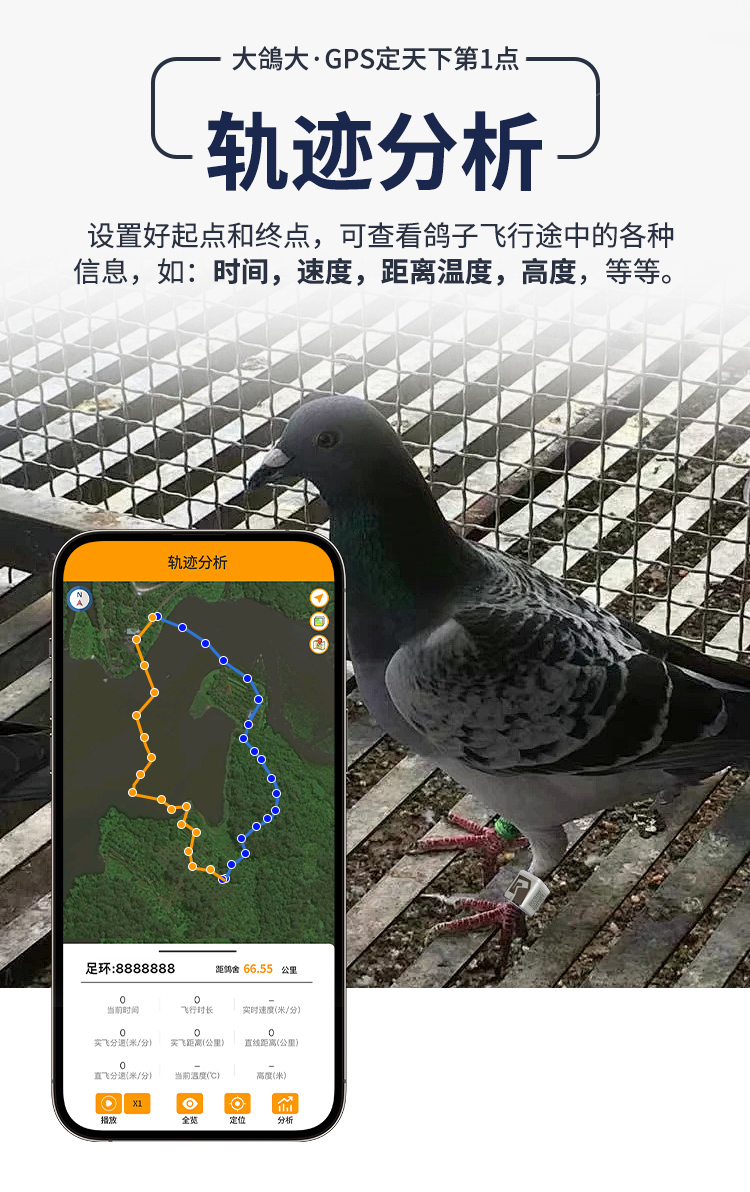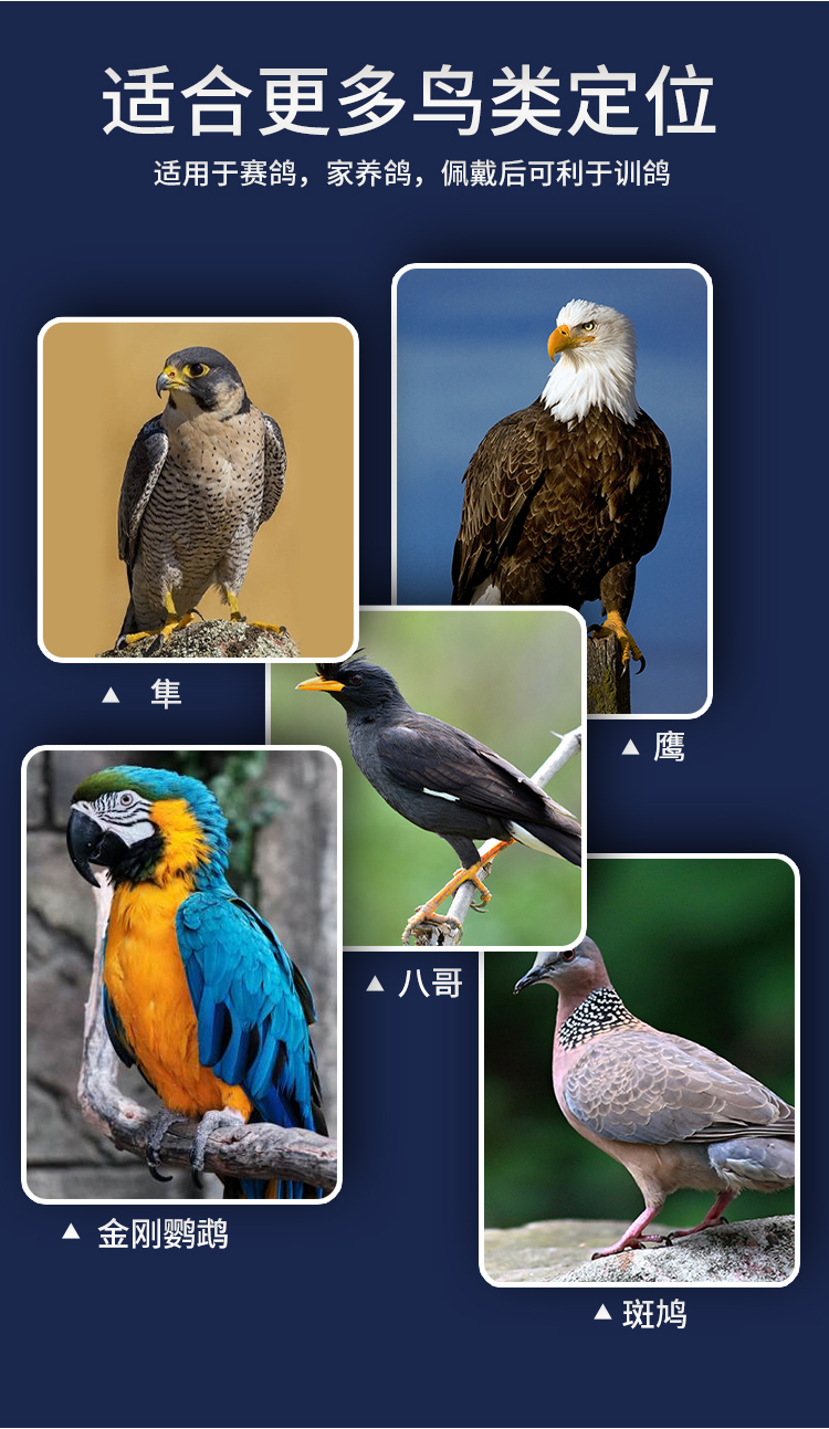 这是一款专门为飞行动物设计的防丢失追踪定位器。作为吉祥乐、数字鸽等知名品牌的同款定位器,大鸽大GPS定位脚环在品质上同样值得信赖。它采用了GPS和BD(北斗)定位技术,可以实时定位、查看轨迹,轻量便携、佩戴舒适,并能长时间待机。无论是公棚、协会、俱乐部中用于训飞与比赛的赛鸽,还是家庭里深受宠爱的鹦鹉、八哥、渡鸦等宠物鸟,大鸽大GPS定位脚环都能完美适配,是爱鸟安全出行的必备保障。